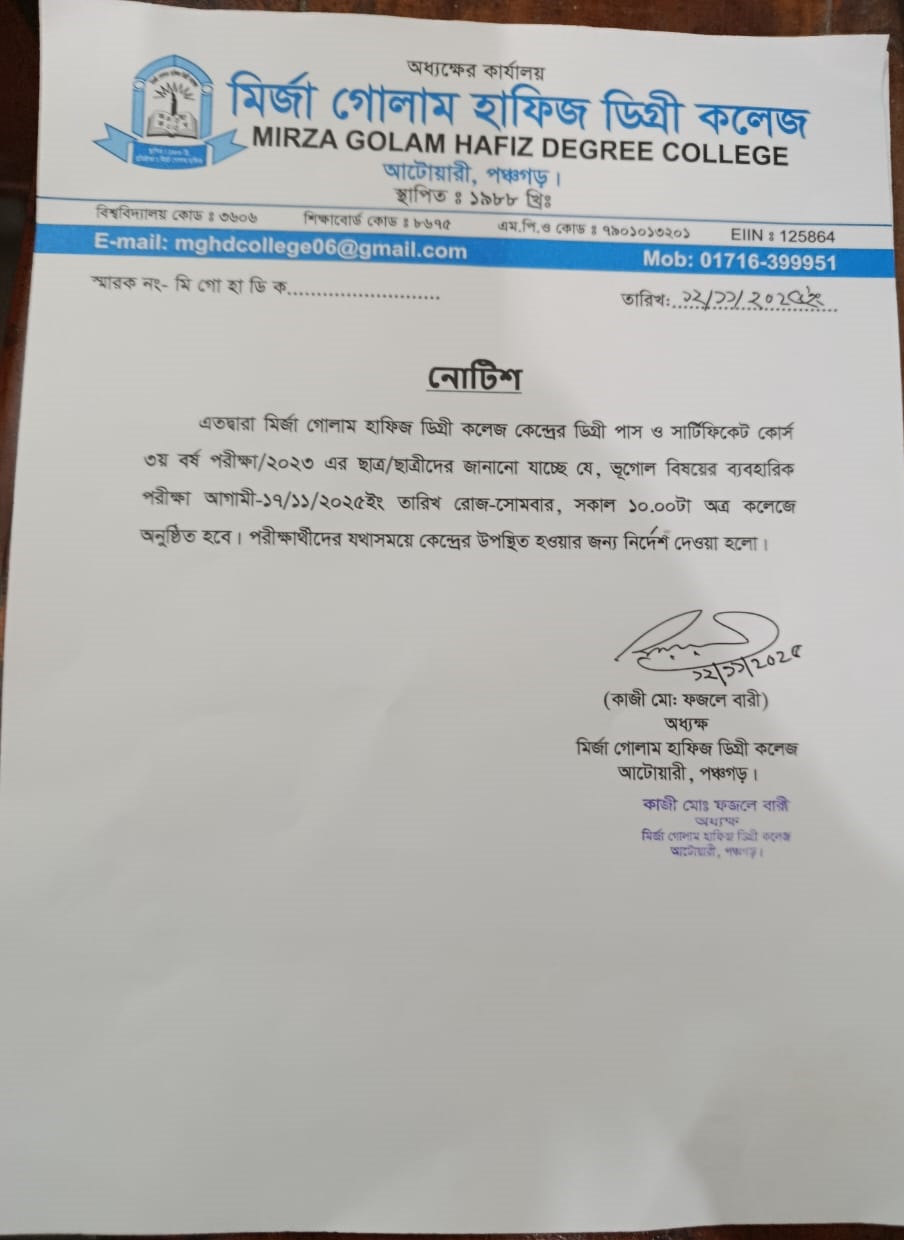 | 1 | 12 Nov, 2025 | ভূগোল বিষয়ের ব্যবহারিক পরীক্ষা আগামী-১৭/১১/২০২৫ইং তারিখ, রোজ-সোমবার। | View Download |
